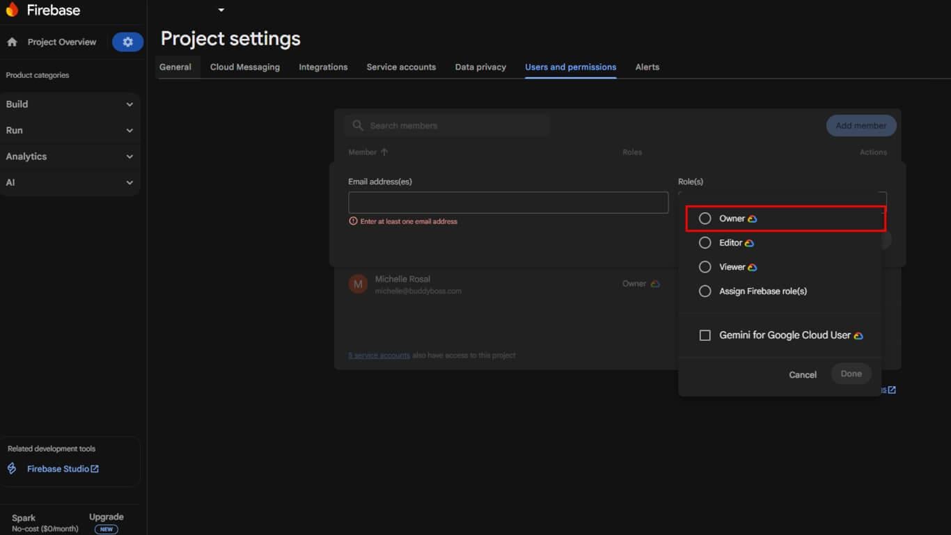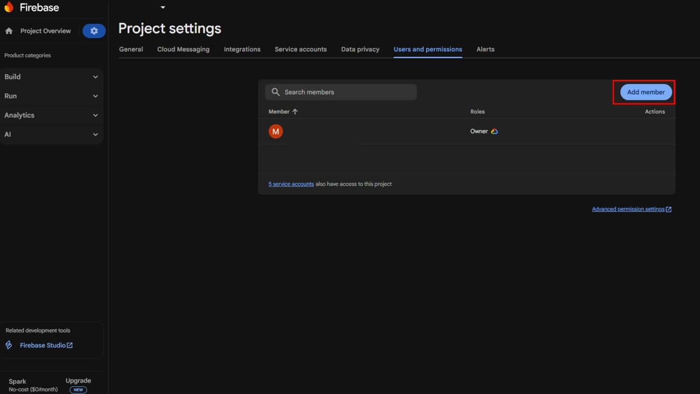 Granting the team Owner access to your Firebase project allows them to configure push notifications, analytics, and other backend services for your MemberPress App without restrictions. This guide walks you through inviting the team as an Owner collaborator in the Firebase Console.
