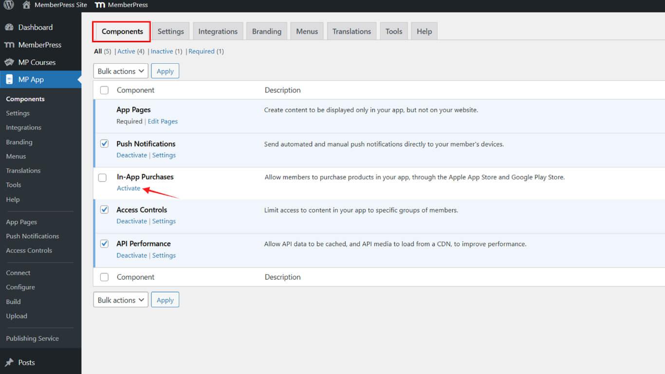 - Vaya a Dashboard > MP App > Components.