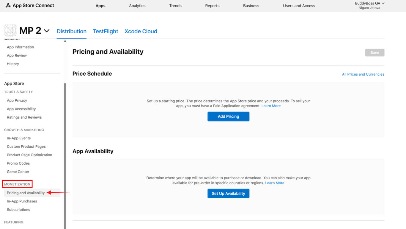 - Vaya a Monetization > Pricing and Availability in App Store Connect.