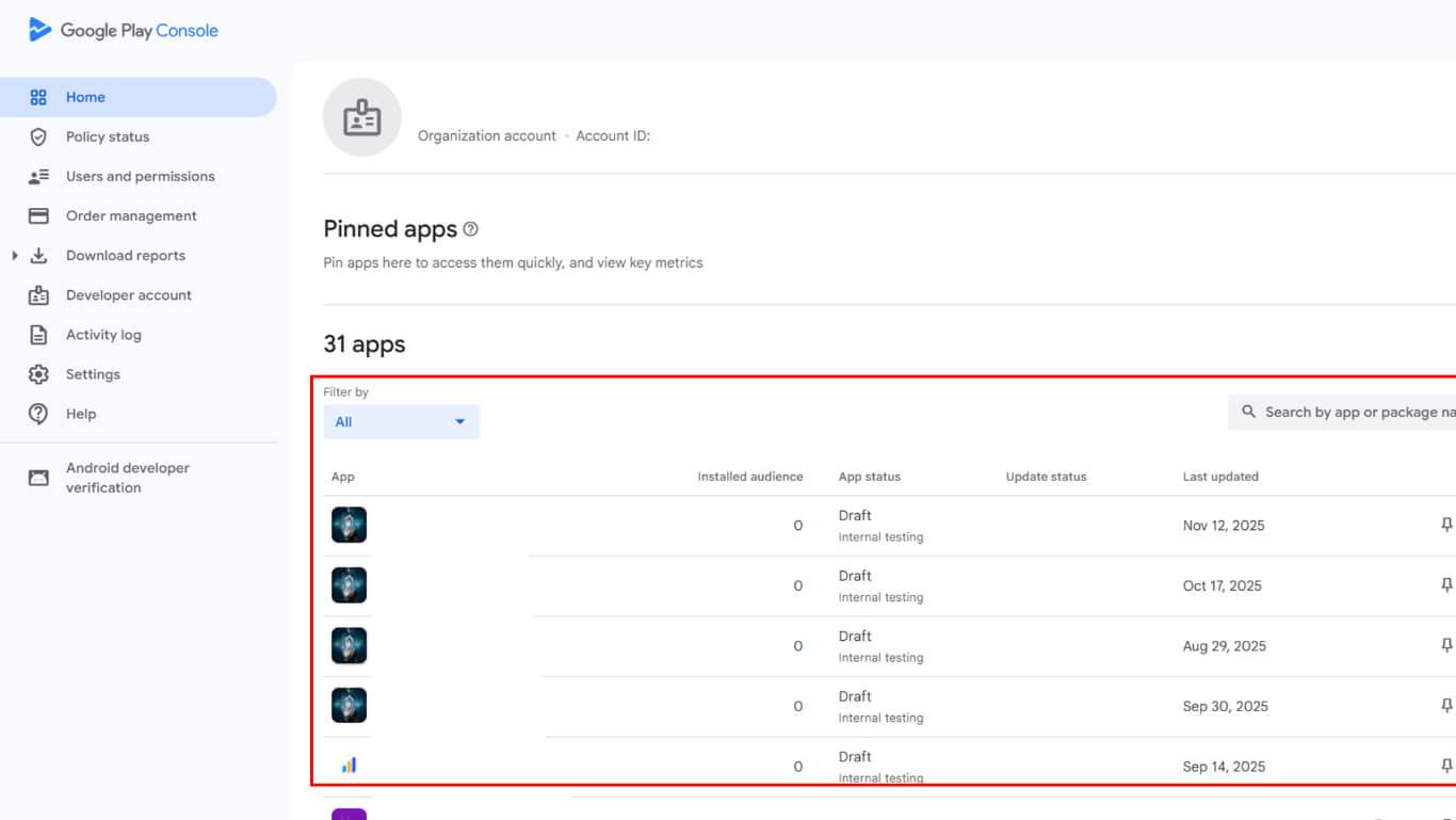 - Vaya a All Apps in the Google Play Console left sidebar.