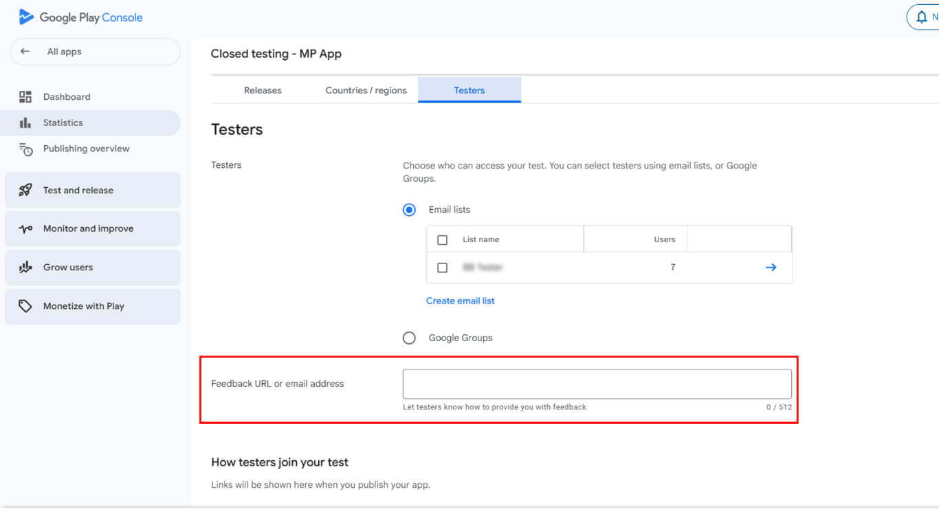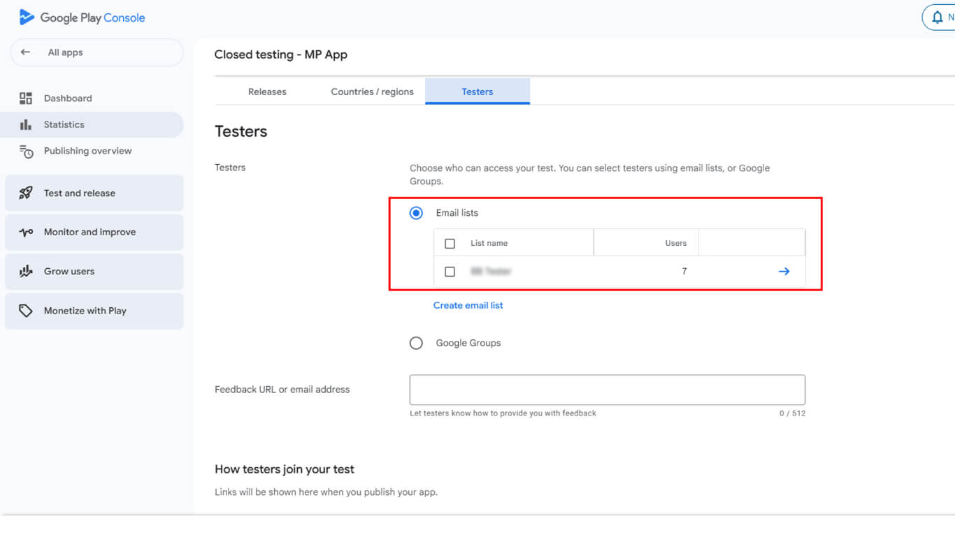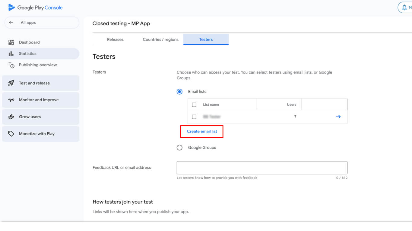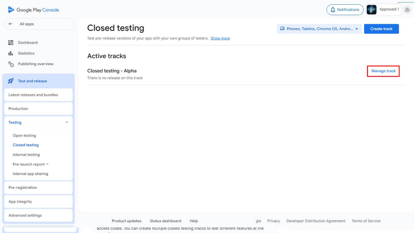 - Vaya a Release > Testing > Closed Testing in the left sidebar.