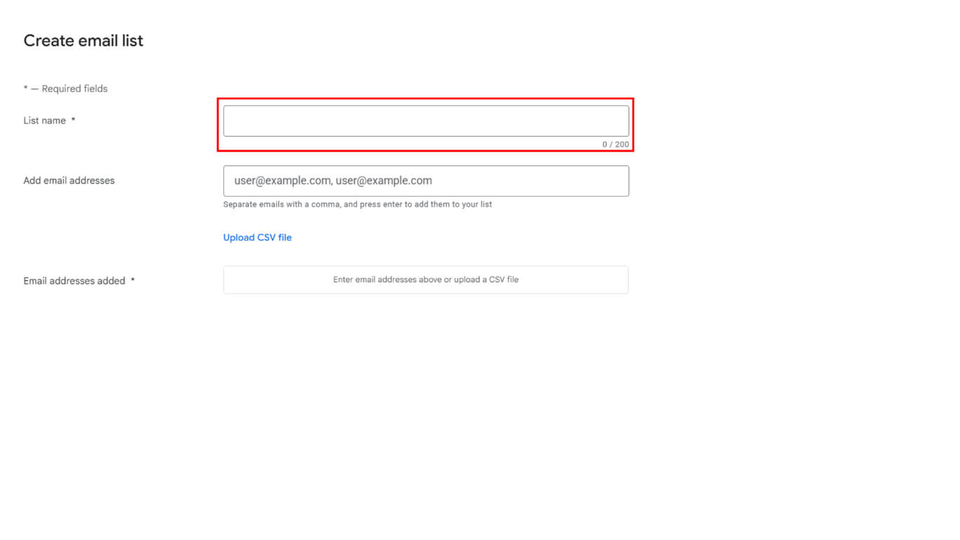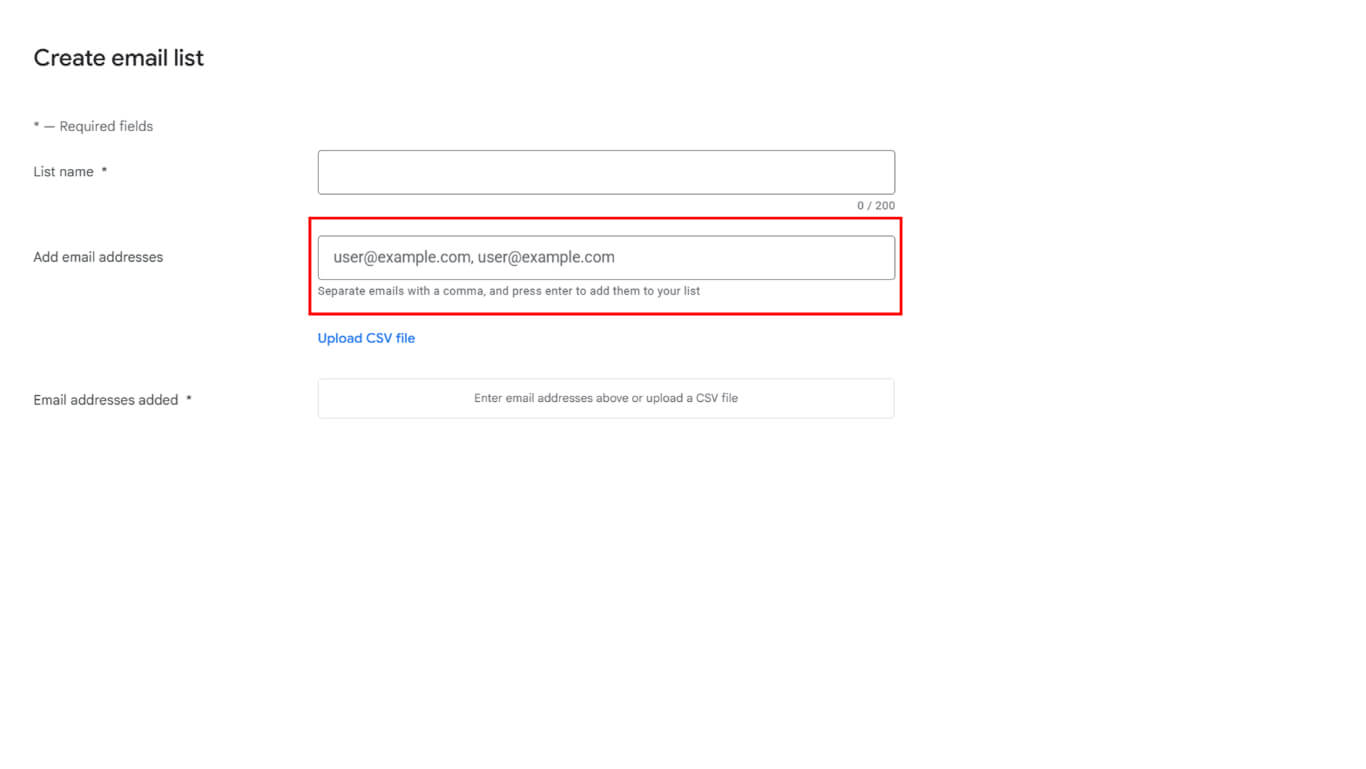 - Add at least 12 email addresses to the tester list, or upload a CSV list.