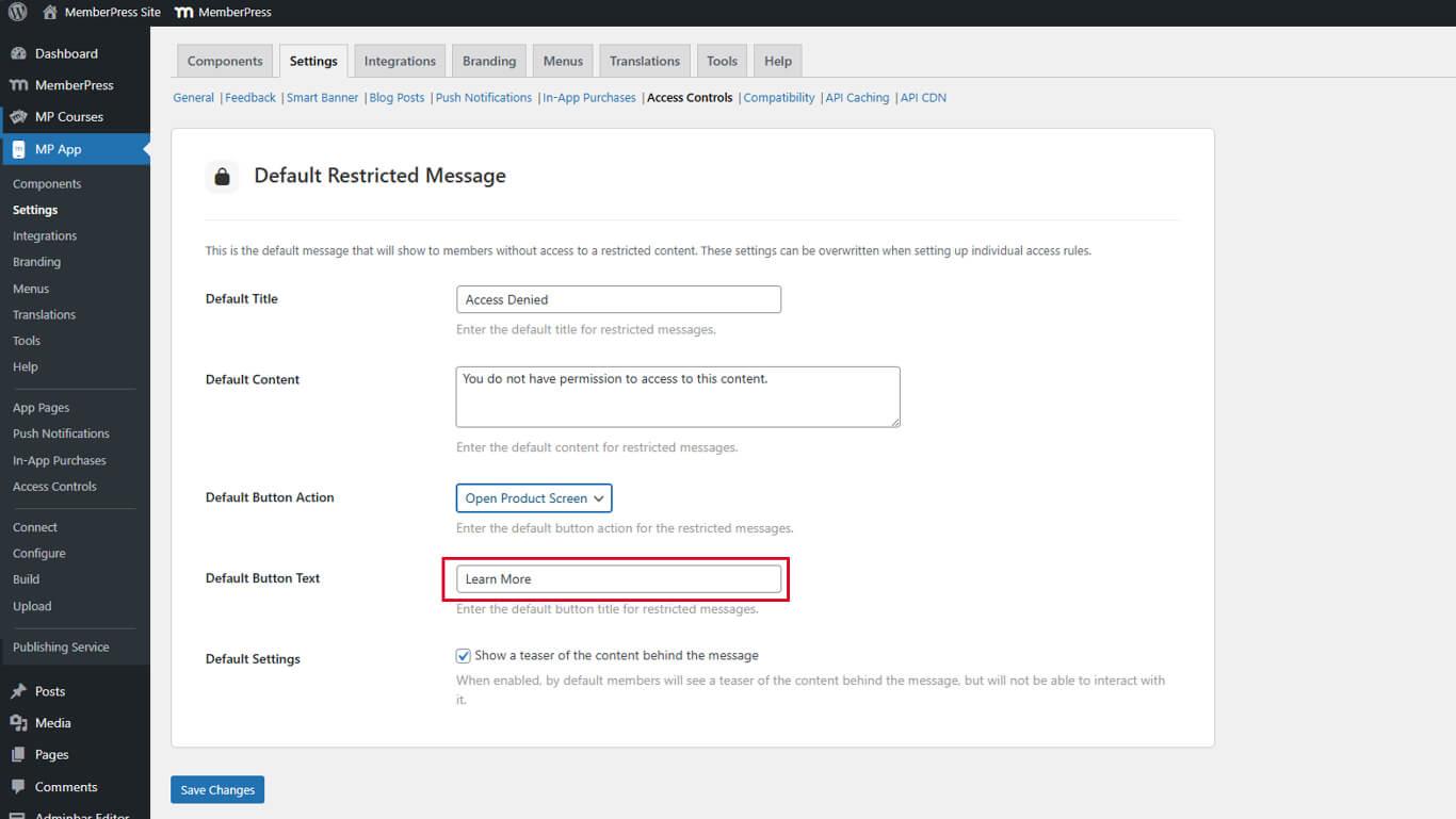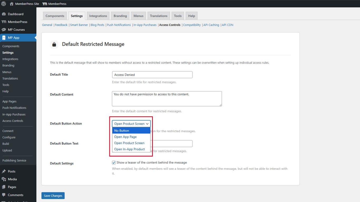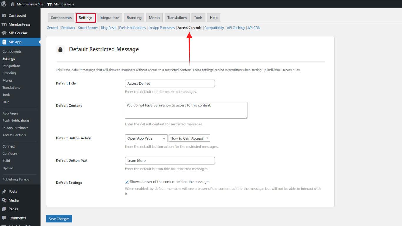 - Vaya a Dashboard > MP App > Settings > Access Controls.