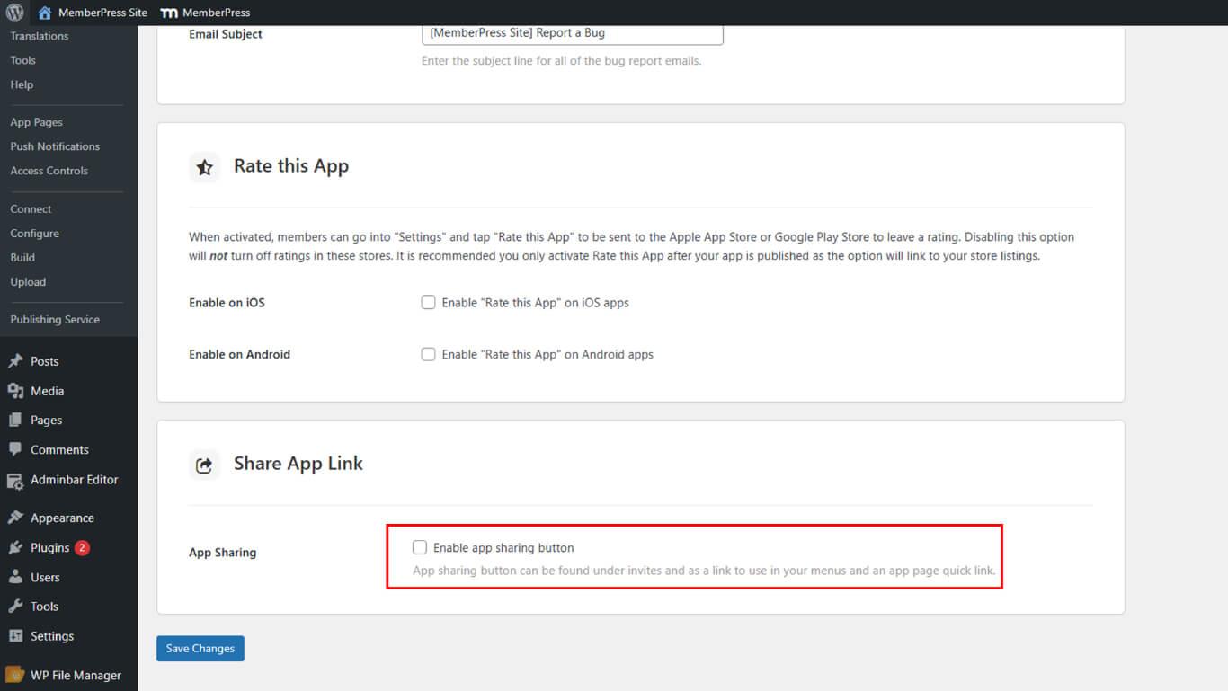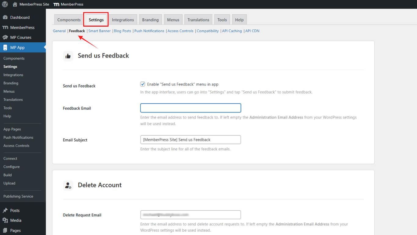 - En WordPress, vaya a Dashboard > MP App > Settings > Feedback.