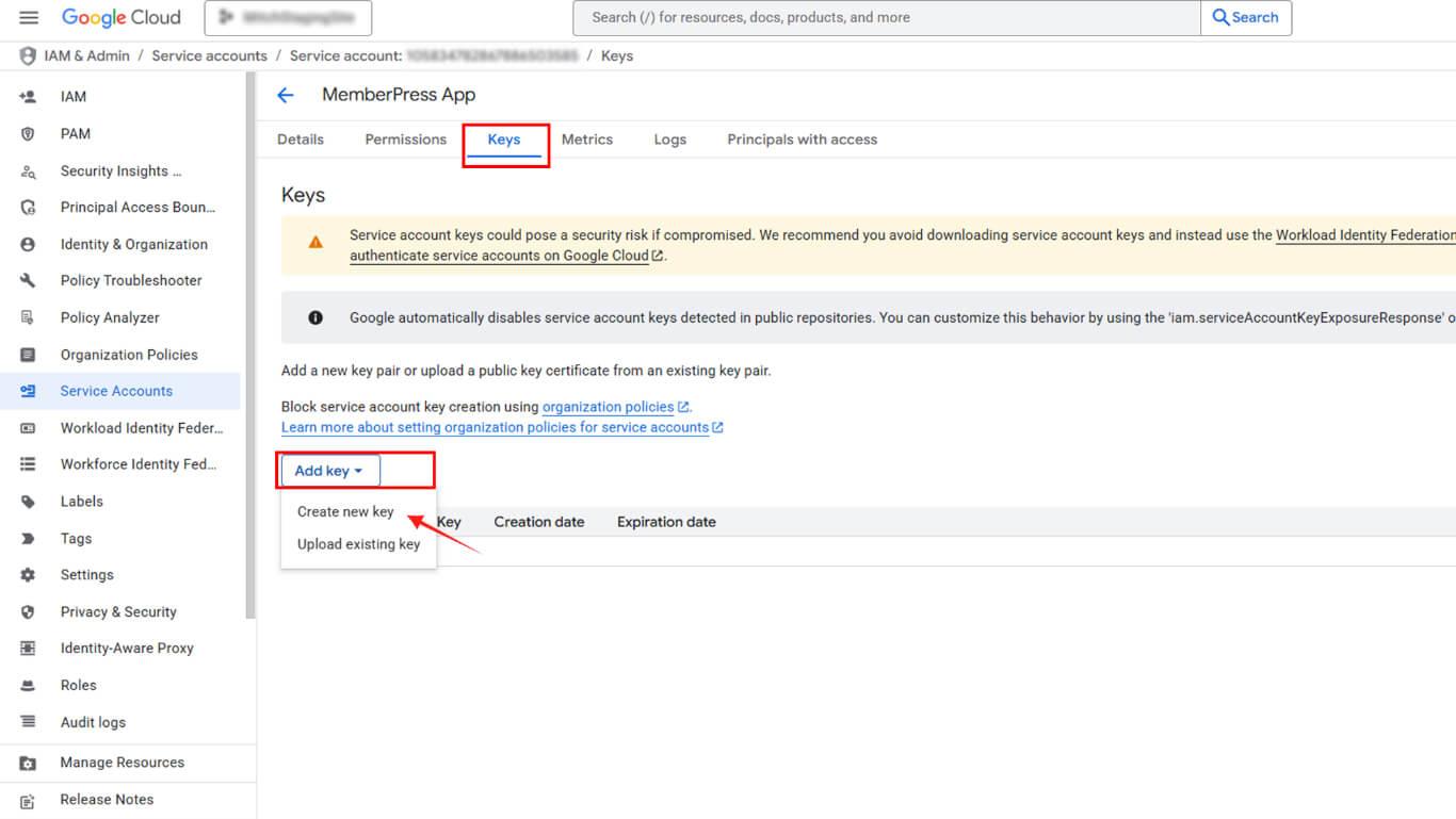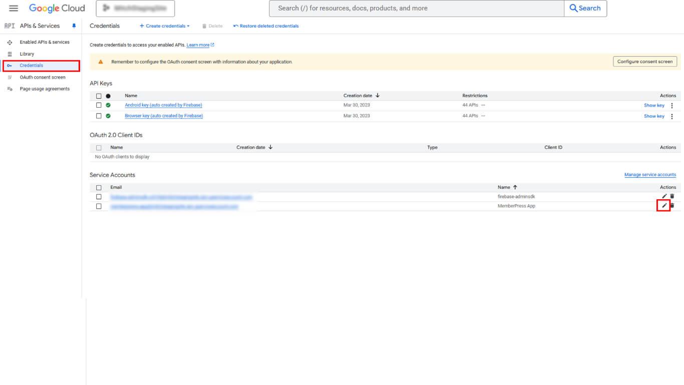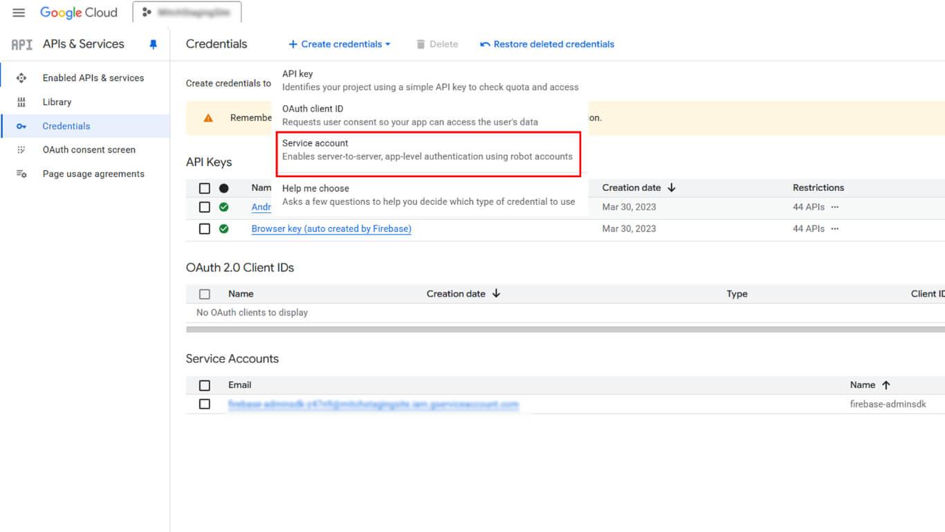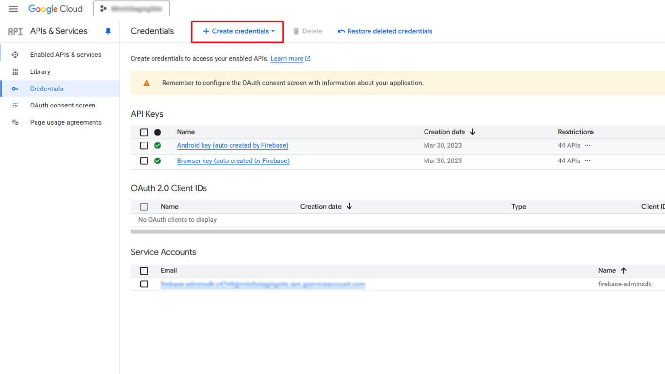 - Vaya a APIs & Services > Credentials in the Google Cloud Console sidebar.