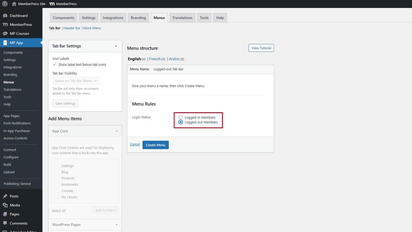 Creating Menus for Logged-Out Members