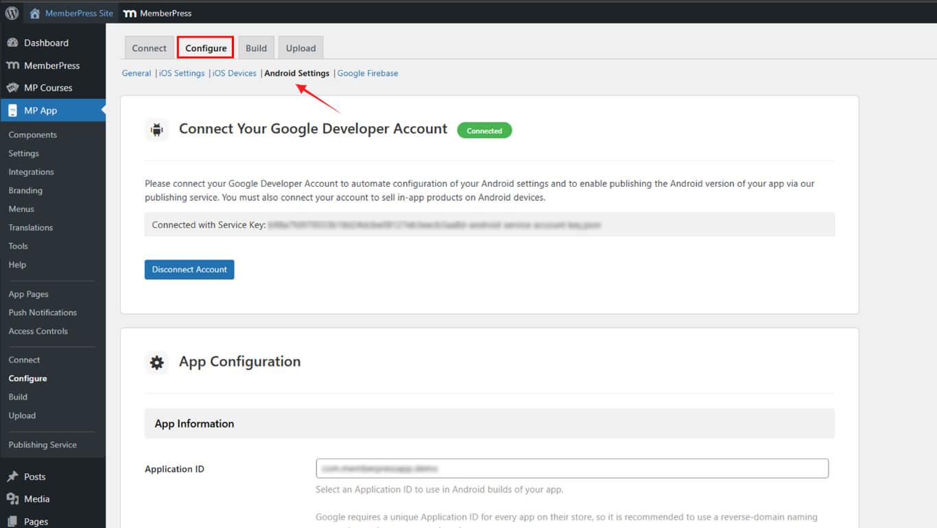 - Ir a Dashboard > MP App > Configure > Android Settings.