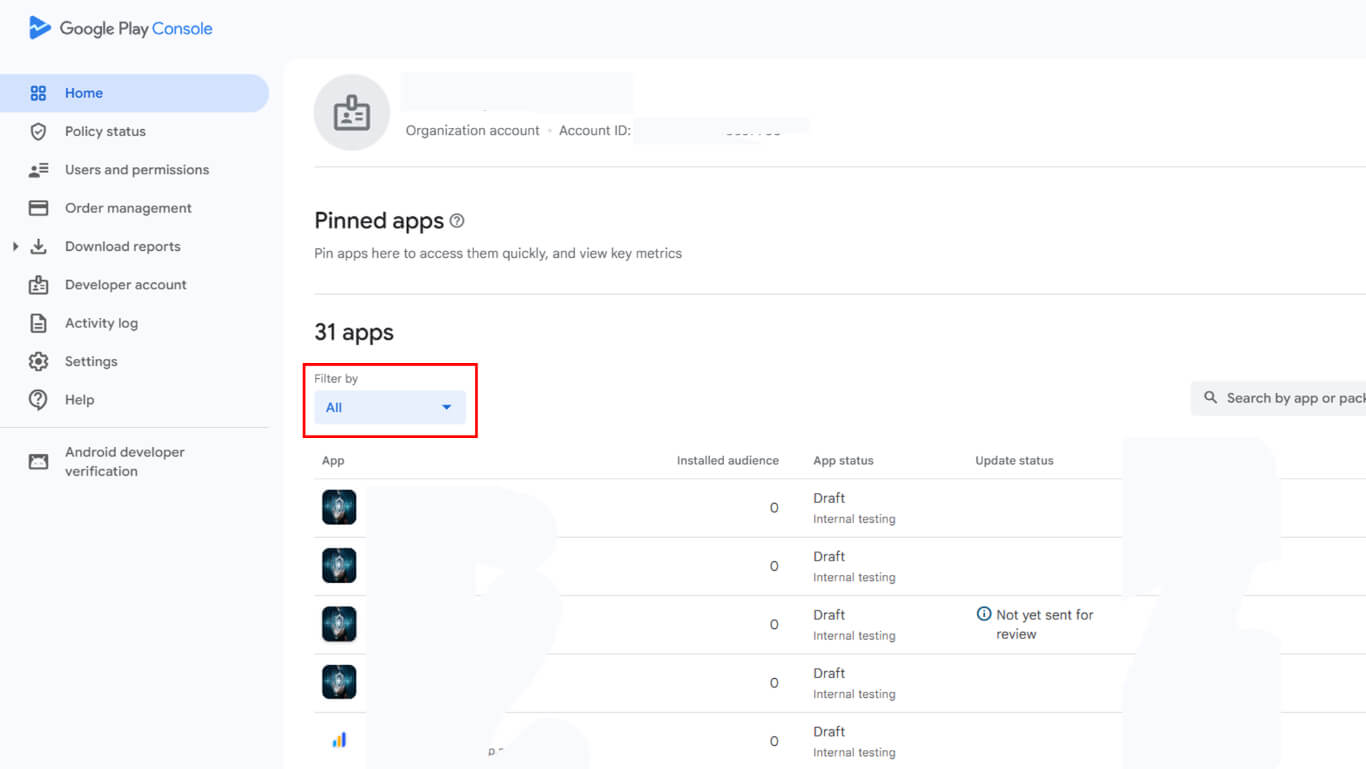 - Go to the Google Play Console dashboard.