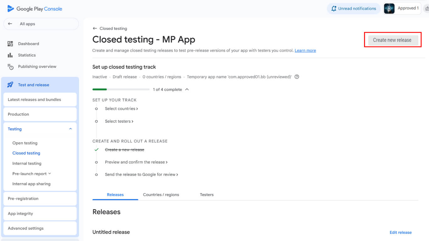 - Wait for Google approval of the testing track release.