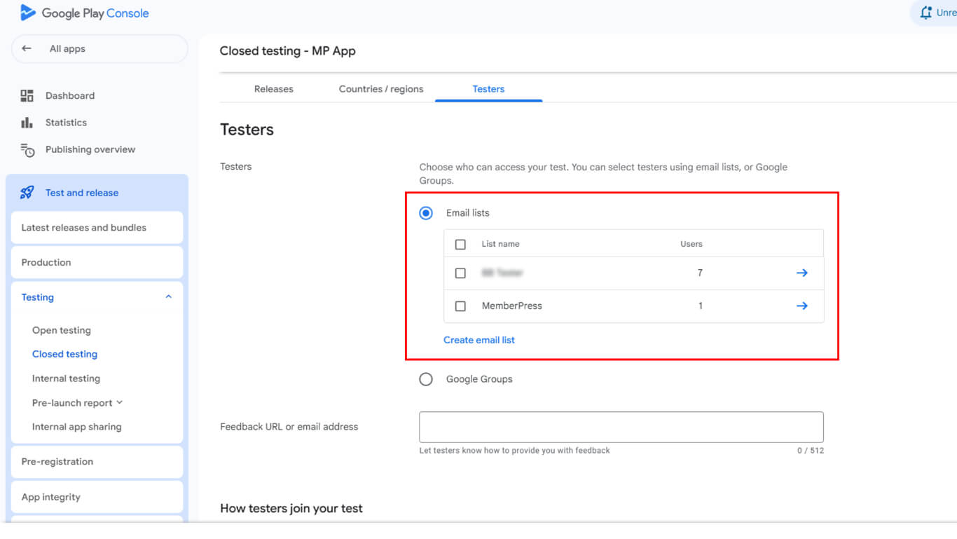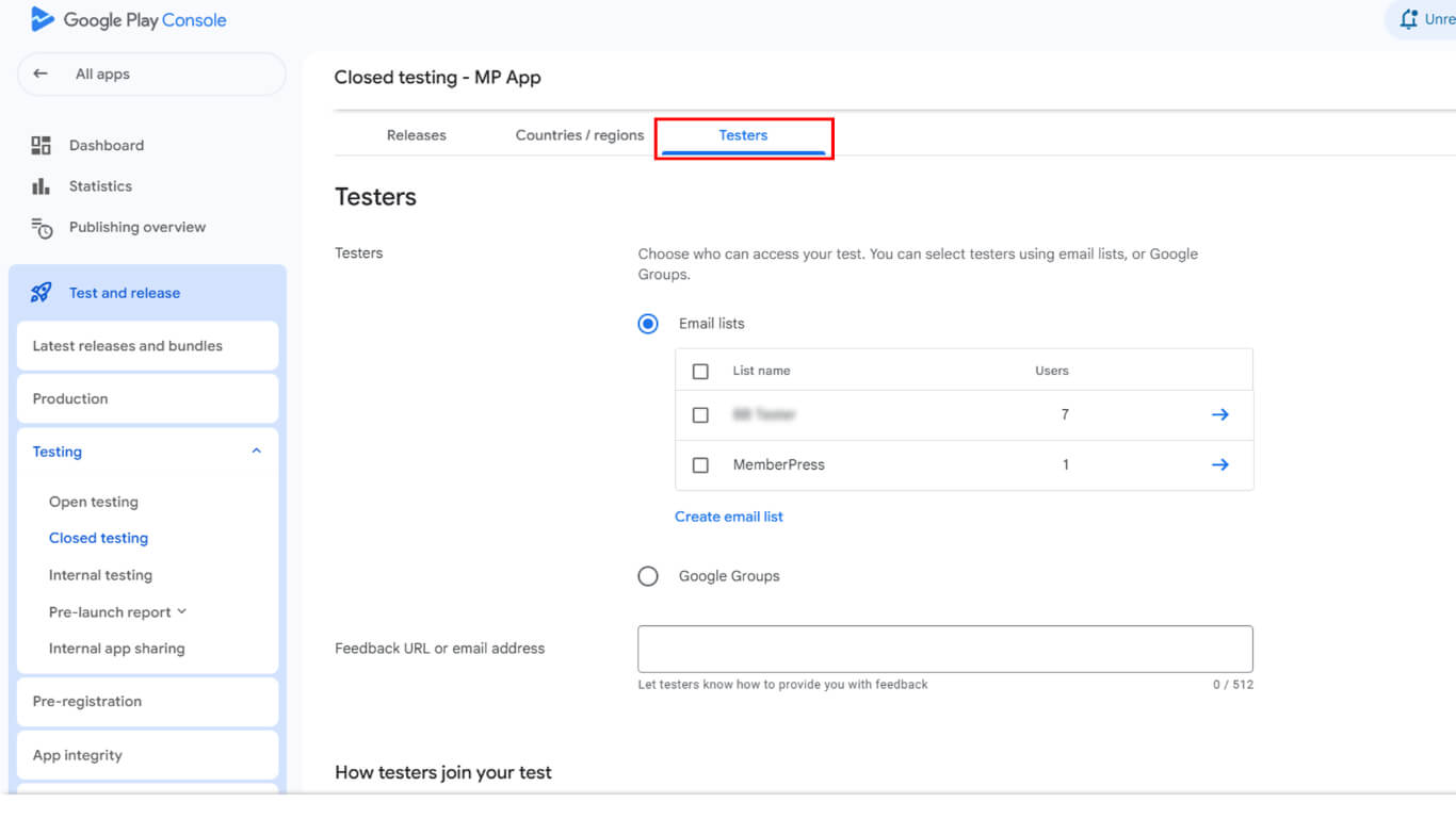 - Add tester email addresses matching their Google Play account emails.