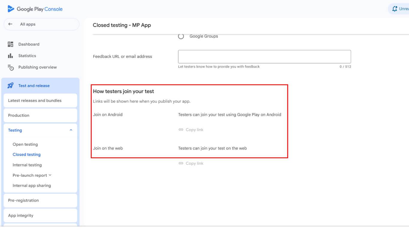 - Scroll to How testers join your test sección.