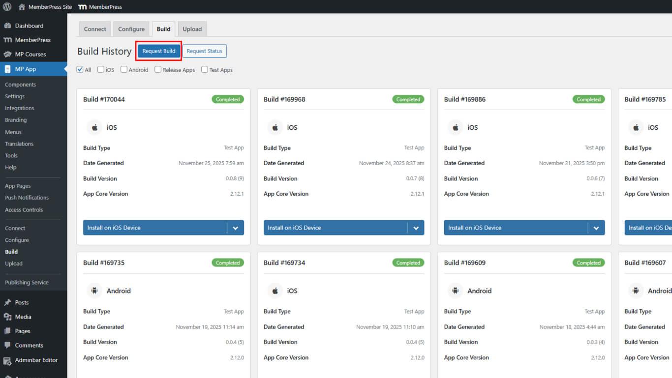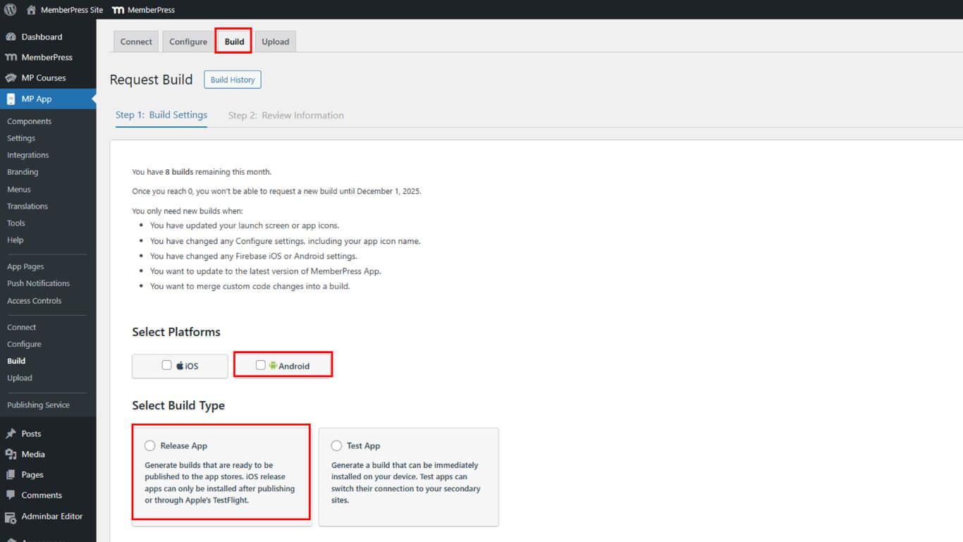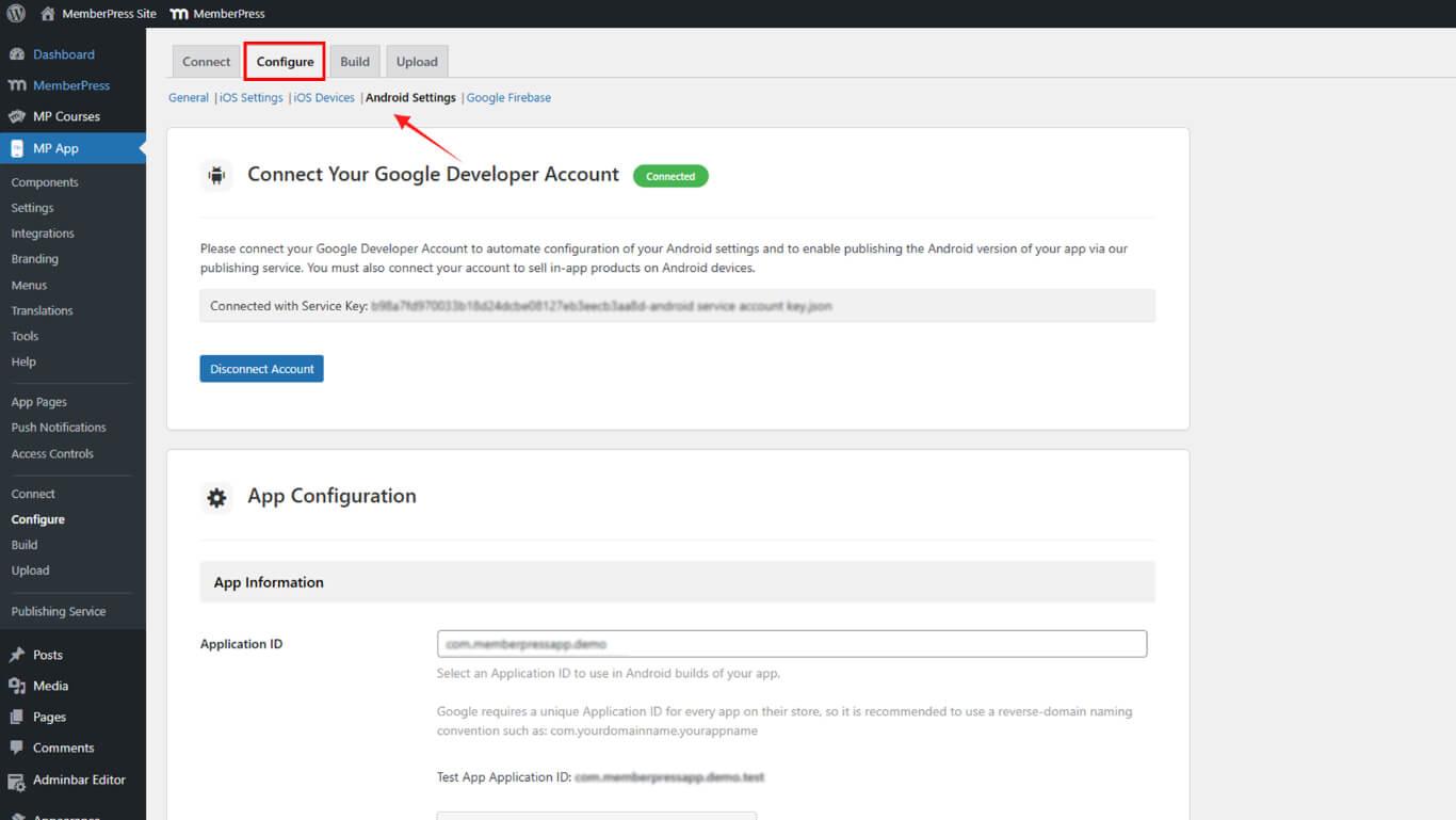 - Vaya a Dashboard > MP App > Configure > Android Settings after build completion.