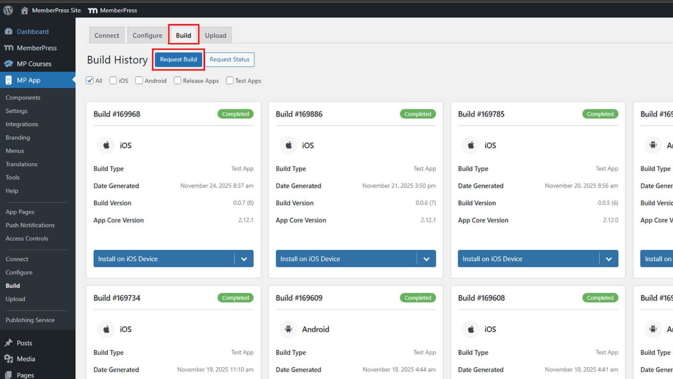 - Vaya a Dashboard > MP App > Build > Build History after build completion.