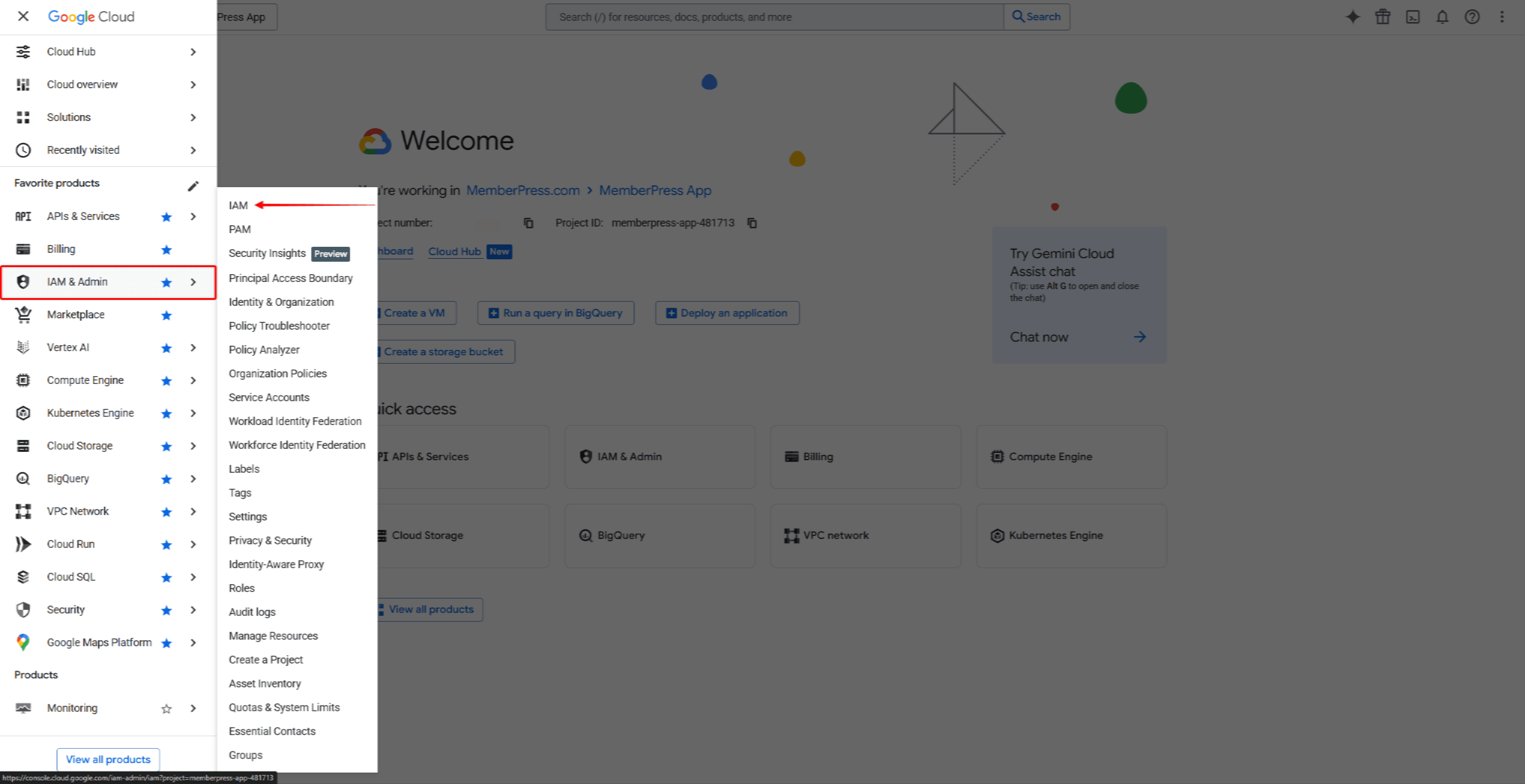 - Navigate back to IAM & Admin > IAM in the Google Cloud Console.
