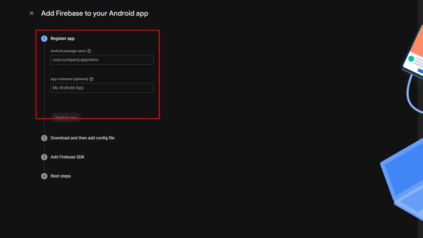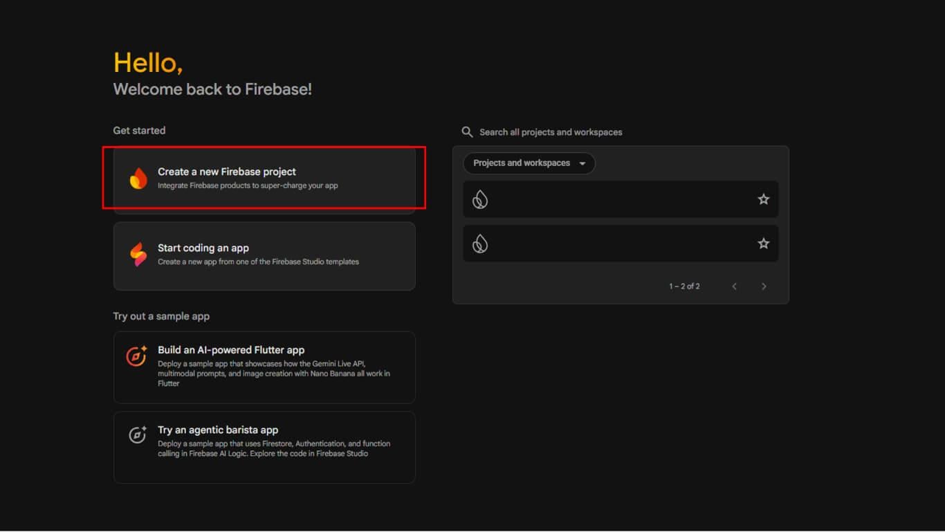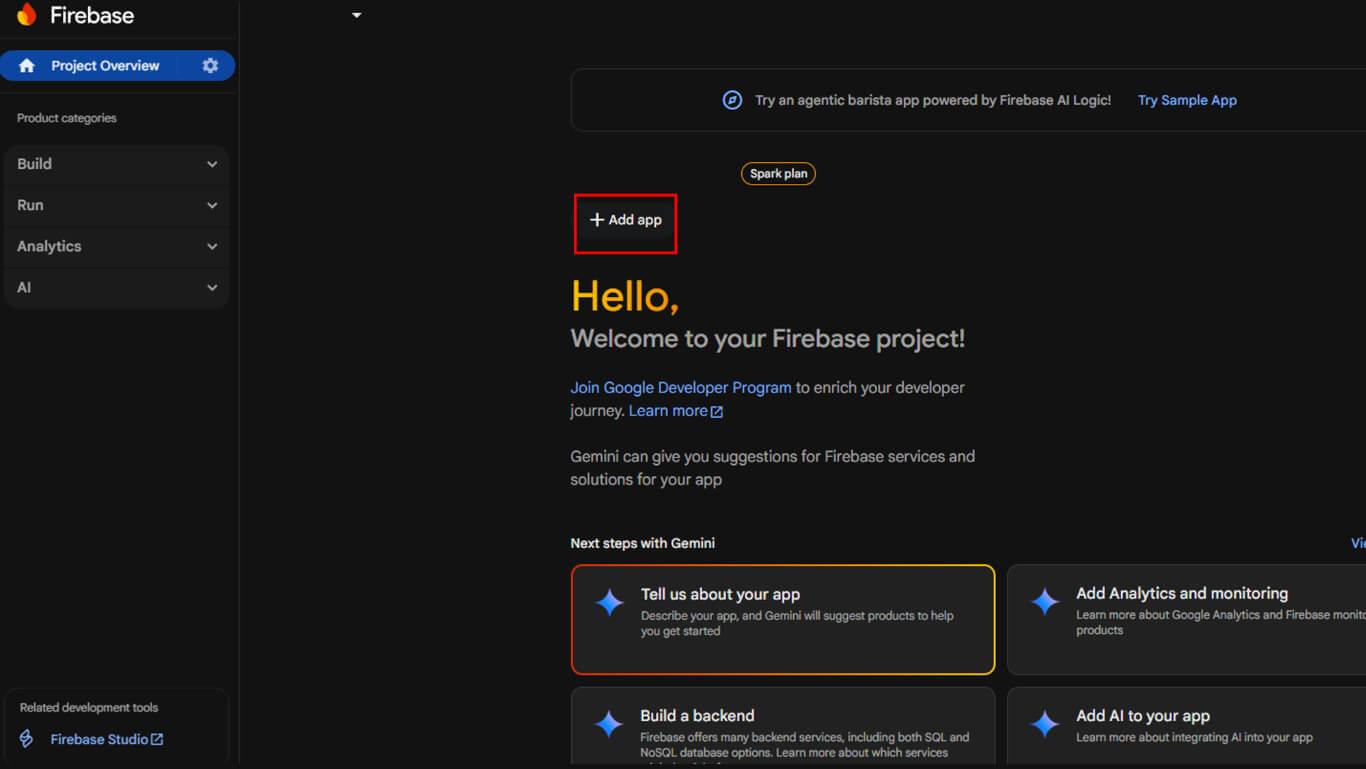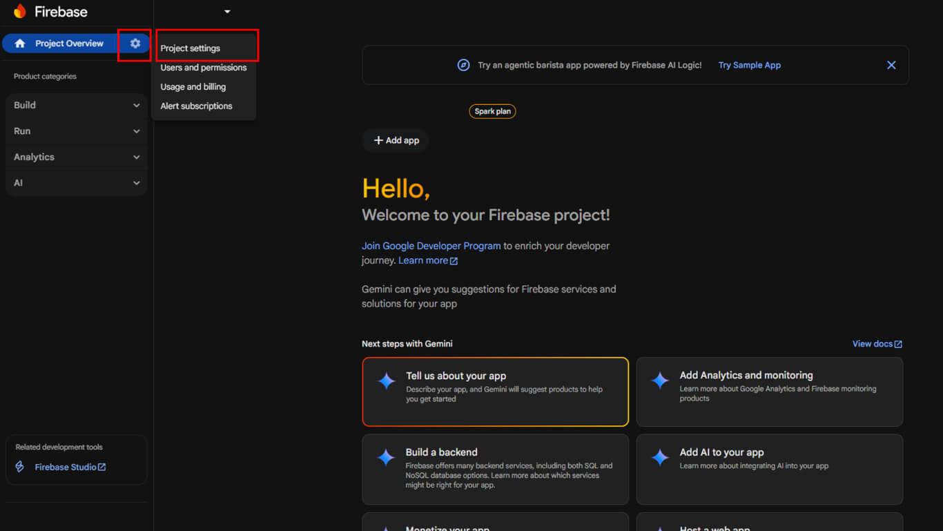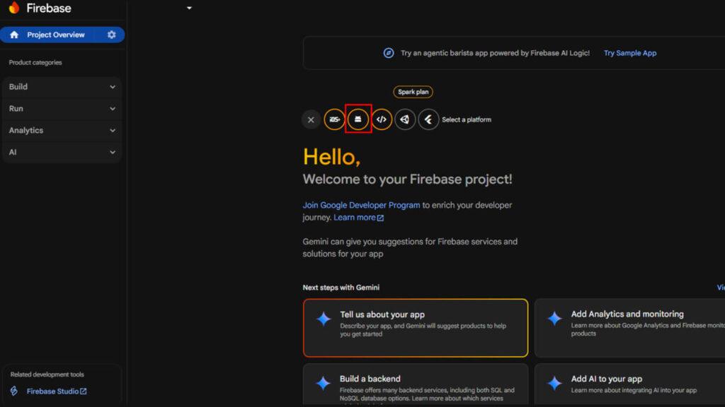 1. Haga clic en el botón Android icon under Get started by adding Firebase to your app.
