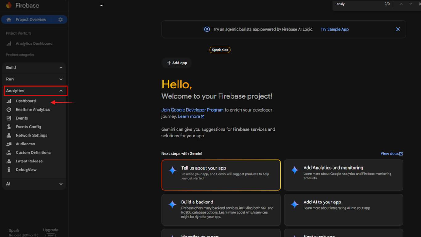1. In Firebase Console, go to Analytics > Dashboard to verify data collection.
