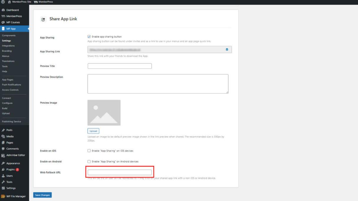 Continue lendoConfiguração do recurso Share App Link no AppKit do MemberPress