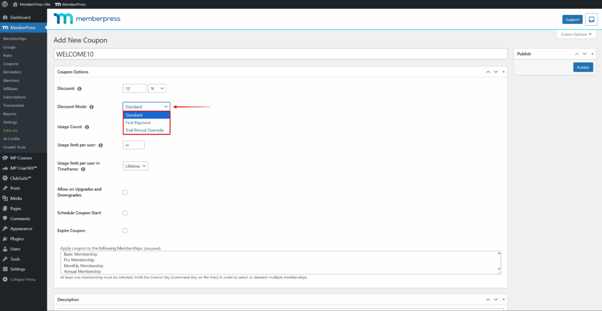 Continue lendoCriando cupons MemberPress